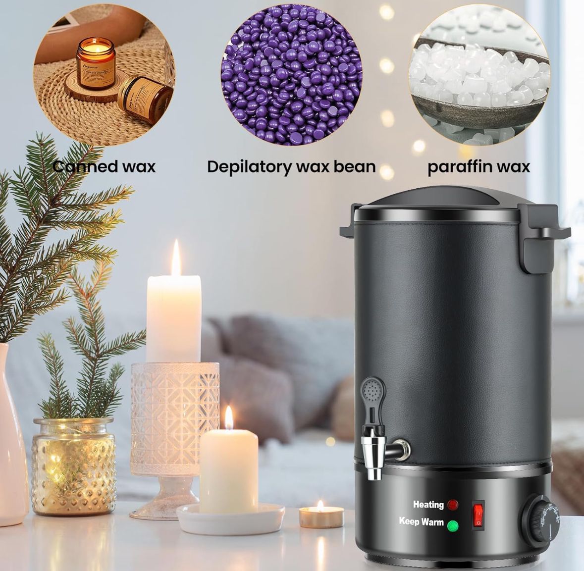 Convenient Temperature Control: The candle wax melter can control the temperature 30°C-110°C/ 86°F-230°F, meet the production needs of different waxes, suitable for soy wax, paraffin, coconut & beeswax and more.